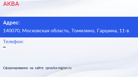 АКВА по адресу 140070, Московская область, Томилино, Гаршина, 11-в в дальнейшем Организация, размещена в следующих категориях:
