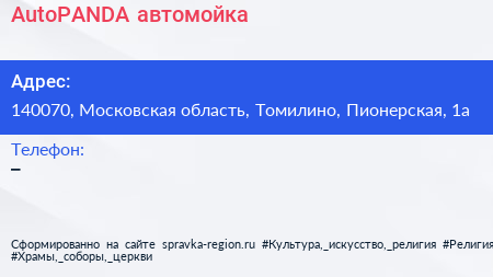 AutoPANDA, автомойка по адресу 140070, Московская область, Томилино, Пионерская, 1а в дальнейшем Организация, размещена в следующих категориях: