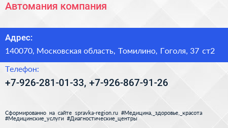 Автомания, компания по адресу 140070, Московская область, Томилино, Гоголя, 37 ст2 в дальнейшем Организация, размещена в следующих категориях: