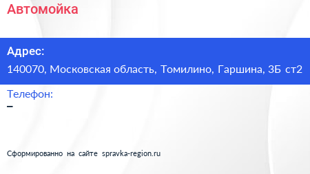 Автомойка по адресу 140070, Московская область, Томилино, Гаршина, 3Б ст2 в дальнейшем Организация, размещена в следующих категориях: