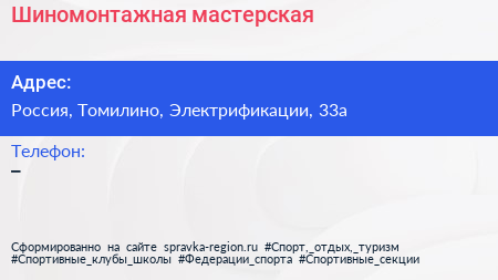 Шиномонтажная мастерская по адресу Перехватывающая парковка РЖД Панки, 1-й Панковский проезд, Люберцы, городской округ Люберцы, Московская область, Центральный федеральный округ, 140004, Россия в дальнейшем Организация, размещена в следующих категориях: