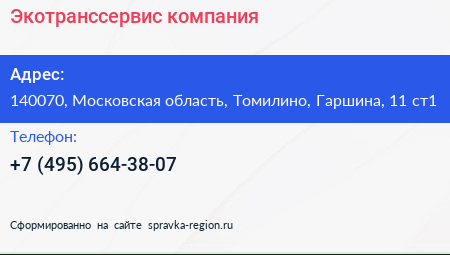 Экотранссервис, компания по адресу 140070, Московская область, Томилино, Гаршина, 11 ст1 в дальнейшем Организация, размещена в следующих категориях: