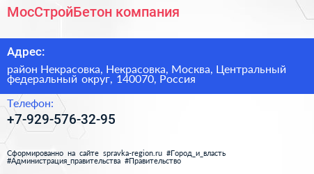 МосСтройБетон, компания по адресу район Некрасовка, Некрасовка, Москва, Центральный федеральный округ, 140070, Россия в дальнейшем Организация, размещена в следующих категориях: