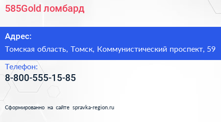 585Gold, ломбард по адресу Томская область, Томск, Коммунистический проспект, 59 в дальнейшем Организация, размещена в следующих категориях: