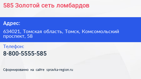 585*Золотой, сеть ломбардов по адресу 634021, Томская область, Томск, Комсомольский проспект, 58 в дальнейшем Организация, размещена в следующих категориях: