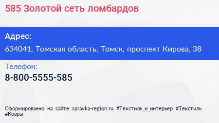 585*Золотой, сеть ломбардов по адресу 634041, Томская область, Томск, проспект Кирова, 38 в дальнейшем Организация, размещена в следующих категориях: