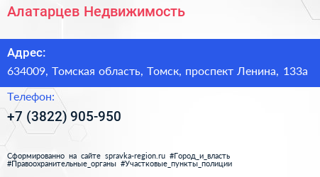 Алатарцев.Недвижимость по адресу 634009, Томская область, Томск, проспект Ленина, 133а в дальнейшем Организация, размещена в следующих категориях: