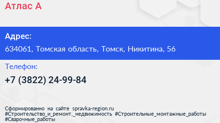 Атлас-А по адресу 634061, Томская область, Томск, Никитина, 56 в дальнейшем Организация, размещена в следующих категориях: