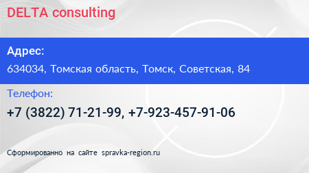 DELTA consulting по адресу 634034, Томская область, Томск, Советская, 84 в дальнейшем Организация, размещена в следующих категориях: