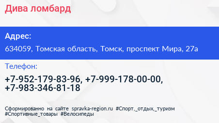 Дива, ломбард по адресу 634059, Томская область, Томск, проспект Мира, 27а в дальнейшем Организация, размещена в следующих категориях: