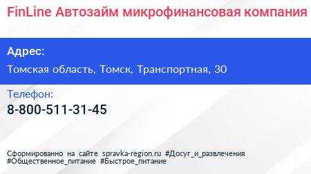 FinLine-Автозайм, микрофинансовая компания по адресу Томская область, Томск, Транспортная, 30 в дальнейшем Организация, размещена в следующих категориях: