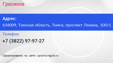 Грасиона по адресу 634009, Томская область, Томск, проспект Ленина, 100/1 в дальнейшем Организация, размещена в следующих категориях: