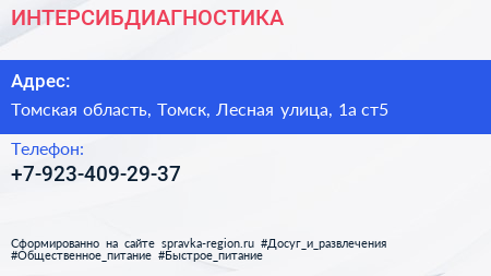 ИНТЕРСИБДИАГНОСТИКА по адресу Томская область, Томск, Лесная улица, 1а ст5 в дальнейшем Организация, размещена в следующих категориях: