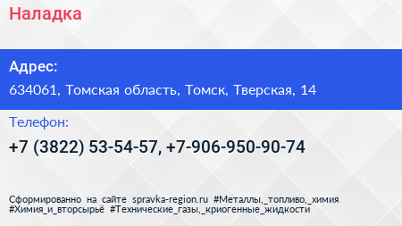 Наладка по адресу 634061, Томская область, Томск, Тверская, 14 в дальнейшем Организация, размещена в следующих категориях: