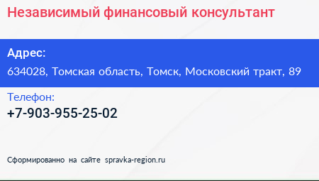 Независимый финансовый консультант по адресу 634028, Томская область, Томск, Московский тракт, 89 в дальнейшем Организация, размещена в следующих категориях: