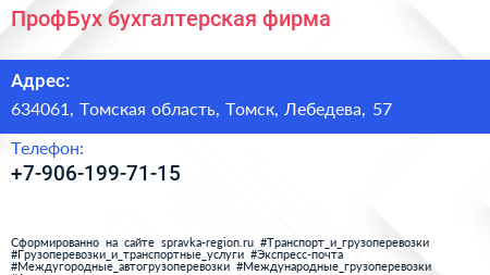 ПрофБух, бухгалтерская фирма по адресу 634061, Томская область, Томск, Лебедева, 57 в дальнейшем Организация, размещена в следующих категориях: