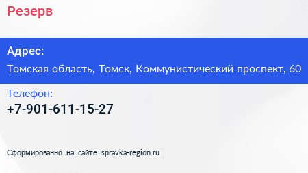 Резерв по адресу Томская область, Томск, Коммунистический проспект, 60 в дальнейшем Организация, размещена в следующих категориях: