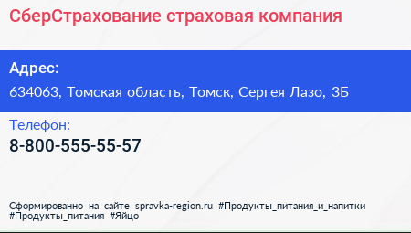 СберСтрахование, страховая компания по адресу 634063, Томская область, Томск, Сергея Лазо, 3Б в дальнейшем Организация, размещена в следующих категориях: