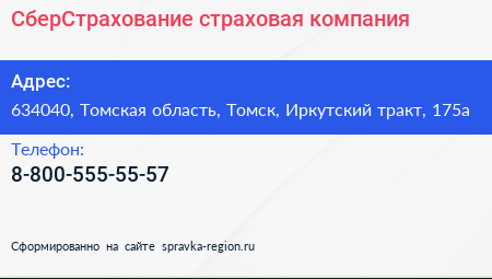 СберСтрахование, страховая компания по адресу 634040, Томская область, Томск, Иркутский тракт, 175а в дальнейшем Организация, размещена в следующих категориях: