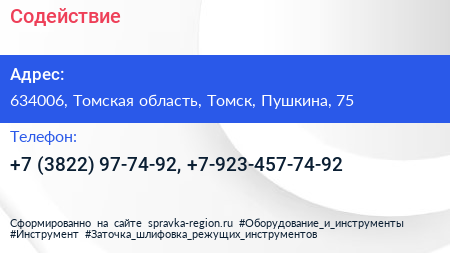 Содействие по адресу 634006, Томская область, Томск, Пушкина, 75 в дальнейшем Организация, размещена в следующих категориях: