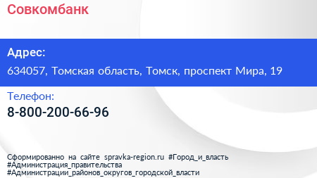 Совкомбанк по адресу 634057, Томская область, Томск, проспект Мира, 19 в дальнейшем Организация, размещена в следующих категориях: