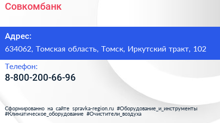 Совкомбанк по адресу 634062, Томская область, Томск, Иркутский тракт, 102 в дальнейшем Организация, размещена в следующих категориях: