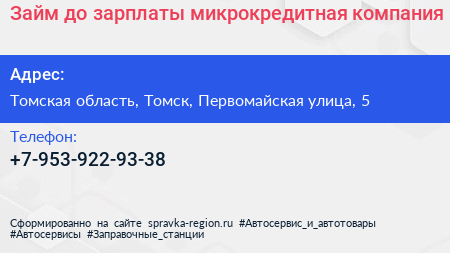 Займ до зарплаты, микрокредитная компания по адресу Томская область, Томск, Первомайская улица, 5 в дальнейшем Организация, размещена в следующих категориях:
