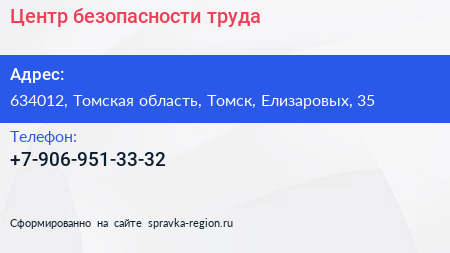 Центр безопасности труда по адресу 634012, Томская область, Томск, Елизаровых, 35 в дальнейшем Организация, размещена в следующих категориях: