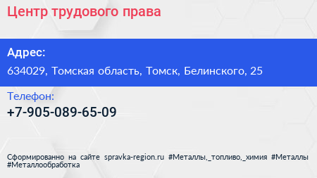 Центр трудового права по адресу 634029, Томская область, Томск, Белинского, 25 в дальнейшем Организация, размещена в следующих категориях:
