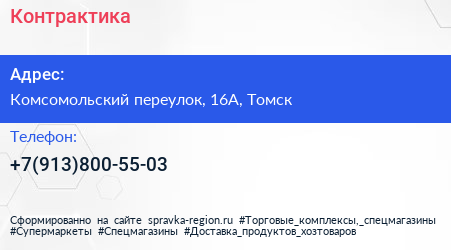 Контрактика по адресу Комсомольский переулок, 16А, Томск в дальнейшем Организация, размещена в следующих категориях:
