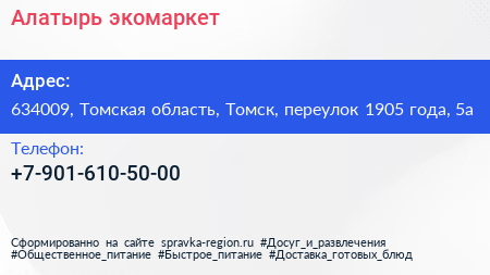 Алатырь, экомаркет по адресу 634009, Томская область, Томск, переулок 1905 года, 5а в дальнейшем Организация, размещена в следующих категориях: