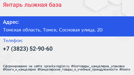 Янтарь, лыжная база по адресу Томская область, Томск, Сосновая улица, 20 в дальнейшем Организация, размещена в следующих категориях: