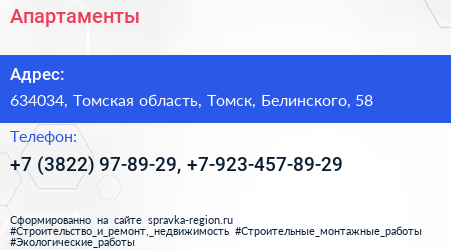 Апартаменты по адресу 634034, Томская область, Томск, Белинского, 58 в дальнейшем Организация, размещена в следующих категориях:
