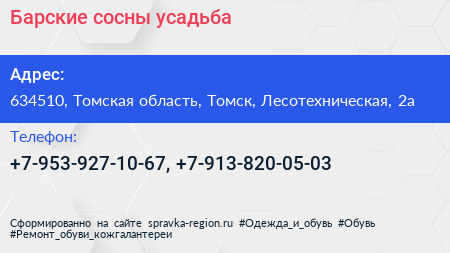 Барские сосны, усадьба по адресу 634510, Томская область, Томск, Лесотехническая, 2а в дальнейшем Организация, размещена в следующих категориях: