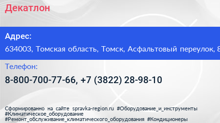 Декатлон по адресу 634003, Томская область, Томск, Асфальтовый переулок, 8 в дальнейшем Организация, размещена в следующих категориях:
