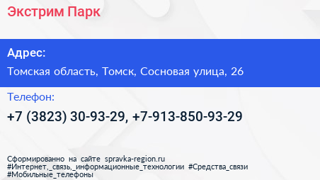 Экстрим-Парк по адресу Томская область, Томск, Сосновая улица, 26 в дальнейшем Организация, размещена в следующих категориях: