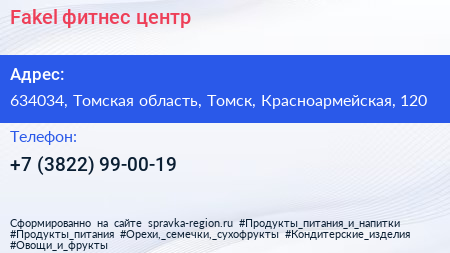 Fakel, фитнес-центр по адресу 634034, Томская область, Томск, Красноармейская, 120 в дальнейшем Организация, размещена в следующих категориях: