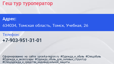 Геш тур, туроператор по адресу 634034, Томская область, Томск, Учебная, 26 в дальнейшем Организация, размещена в следующих категориях: