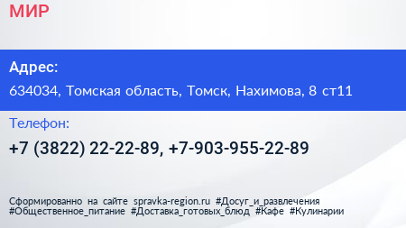 МИР по адресу 634034, Томская область, Томск, Нахимова, 8 ст11 в дальнейшем Организация, размещена в следующих категориях: