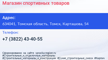 Магазин спортивных товаров по адресу 634041, Томская область, Томск, Карташова, 54 в дальнейшем Организация, размещена в следующих категориях: