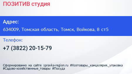 ПОЗИТИВ, студия по адресу 634009, Томская область, Томск, Войкова, 8 ст5 в дальнейшем Организация, размещена в следующих категориях: