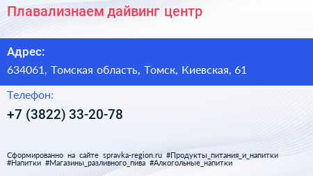 Плавализнаем, дайвинг-центр по адресу 634061, Томская область, Томск, Киевская, 61 в дальнейшем Организация, размещена в следующих категориях: