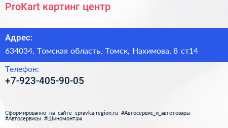 ProKart, картинг-центр по адресу 634034, Томская область, Томск, Нахимова, 8 ст14 в дальнейшем Организация, размещена в следующих категориях: