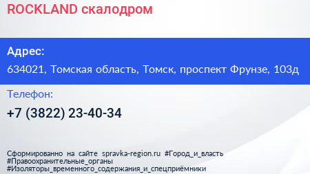 ROCKLAND, скалодром по адресу 634021, Томская область, Томск, проспект Фрунзе, 103д в дальнейшем Организация, размещена в следующих категориях: