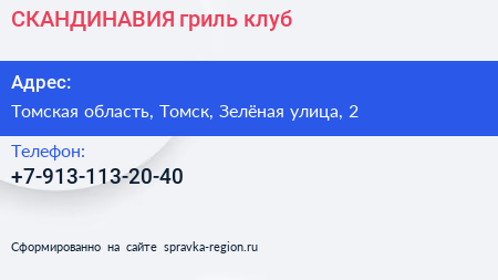 СКАНДИНАВИЯ, гриль-клуб по адресу Томская область, Томск, Зелёная улица, 2 в дальнейшем Организация, размещена в следующих категориях: