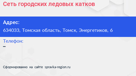 Сеть городских ледовых катков по адресу 634033, Томская область, Томск, Энергетиков, 6 в дальнейшем Организация, размещена в следующих категориях: