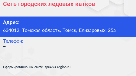 Сеть городских ледовых катков по адресу 634012, Томская область, Томск, Елизаровых, 25а в дальнейшем Организация, размещена в следующих категориях: