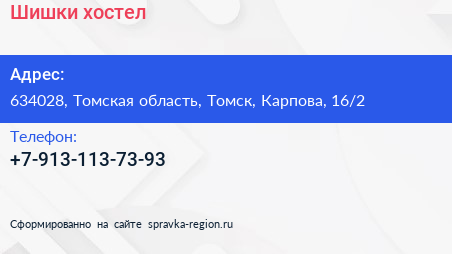 Шишки, хостел по адресу 634028, Томская область, Томск, Карпова, 16/2 в дальнейшем Организация, размещена в следующих категориях: