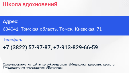 Школа вдохновениЯ по адресу 634041, Томская область, Томск, Киевская, 71 в дальнейшем Организация, размещена в следующих категориях: