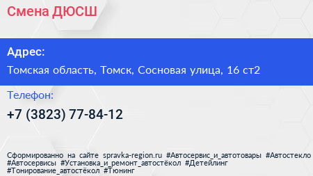 Смена, ДЮСШ по адресу Томская область, Томск, Сосновая улица, 16 ст2 в дальнейшем Организация, размещена в следующих категориях: